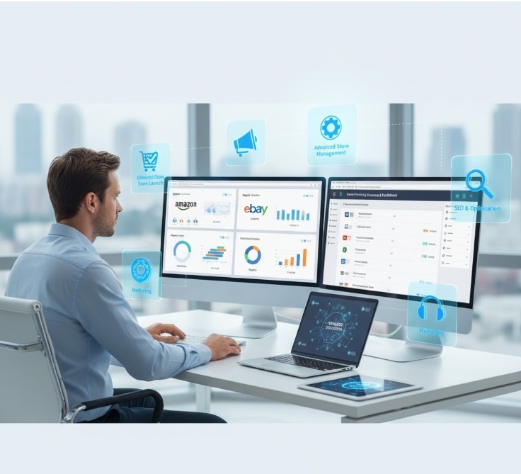 Experience a full suite of ecommerce services crafted to support every stage of your online business. From building a high-performing store to managing operations, optimizing performance, and driving sustainable growth, we provide the tools and expertise you need to succeed with confidence.